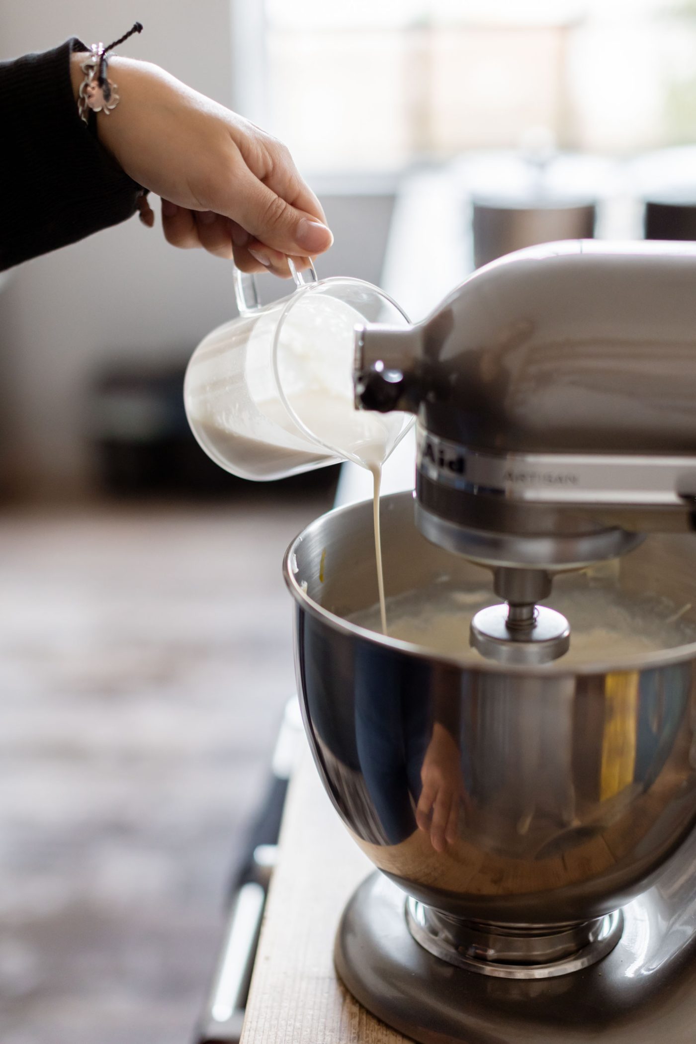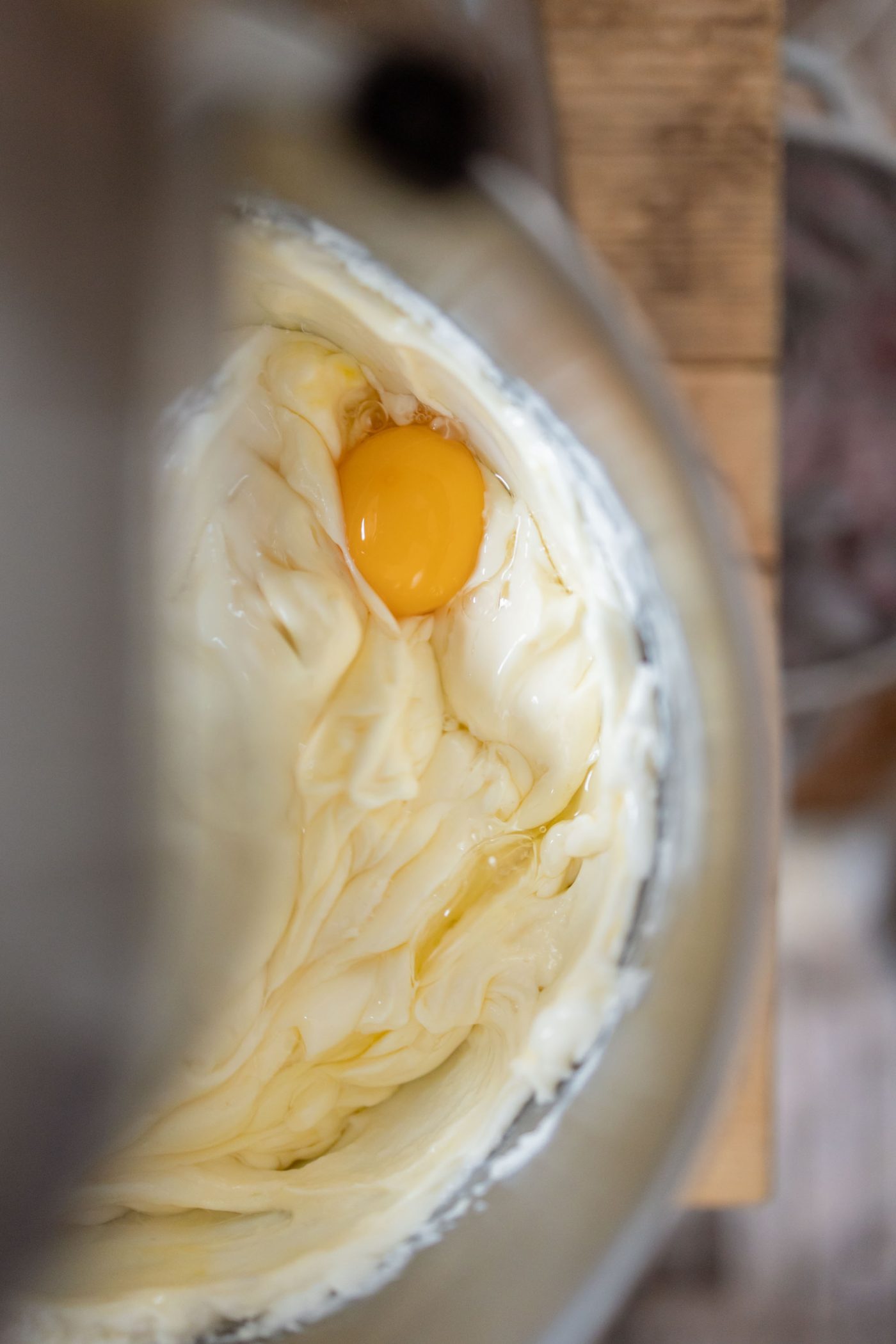 4. Increase the speed slightly by adding one egg at a time, making sure to incorporate it well before adding the next.