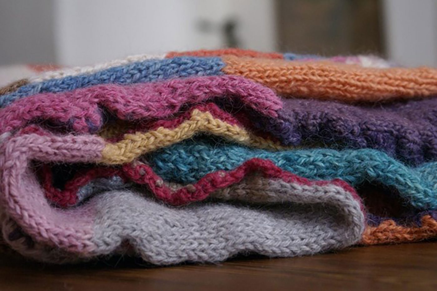 The wool blanket made by Paola from the many hand-dyed skeins