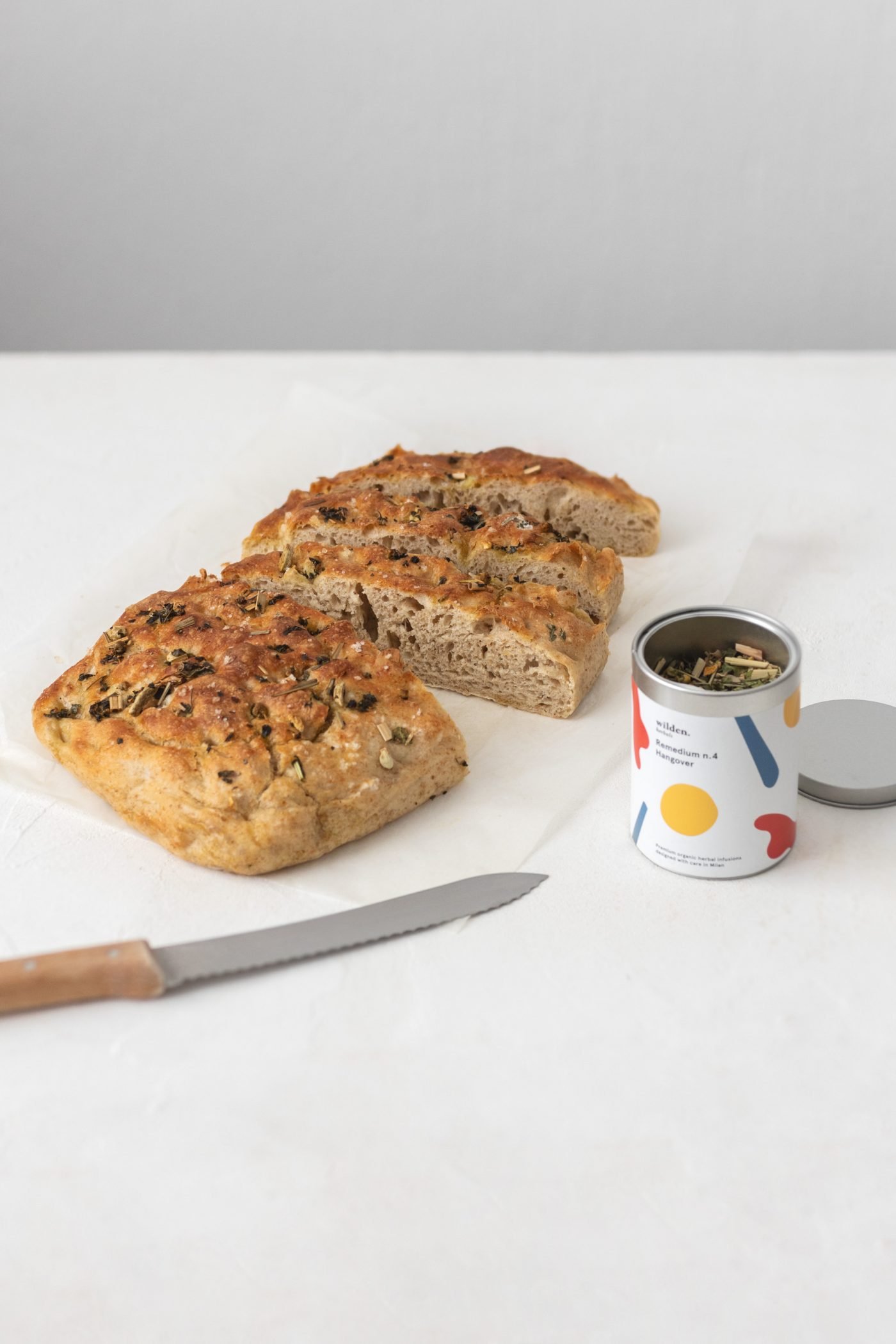 Nella nostra versione troverai qualche ingrediente che magari non ti aspettavi. No, non è il miele, che serve per risvegliare e rendere più veloce il lavoro del lievito, ma le spezie del nostro Remedium n. 4 – Hangover. Curcuma, zenzero e pepe le daranno un po’ di piccantezza, ma ci sono arancia dolce, camomilla e finocchio a riportare l’equilibrio verso un gusto più delicato. Poi ci pensano limone, menta e citronella a conferire un sapore fresco e leggermente citrico.