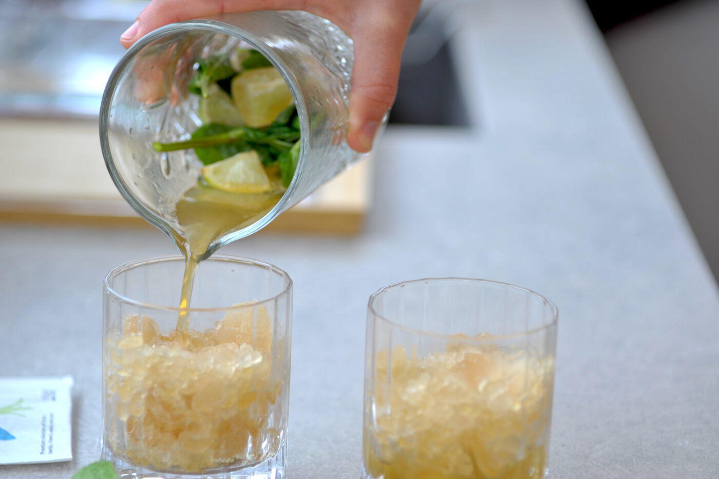 Rum, mint and lime. This is just the launch pad for preparing a spatial mojito. To really make it take off, we added the ingredients of our Focus herbal tea, such as basil, mate and rosemary.