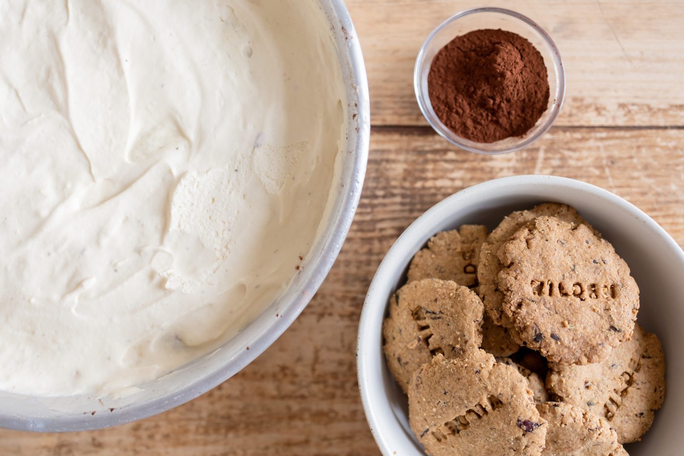 incorporated into the cream. - Now it’s time to assemble the tea-ramisu: dip the ladyfingers, one at a time, into the syrup obtained with Morning herbal tea and arrange them on a glass container until they have covered the base. Add a layer of mascarpone and top with bitter cocoa powder or grated chocolate. Repeat until all the mascarpone is used up.
