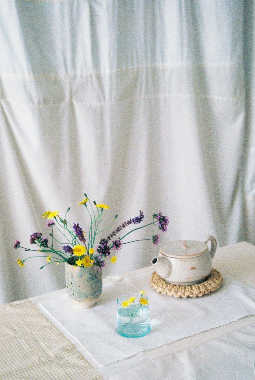 These days I like to mix dried organic sage, which I grew in a container here in England, withdried nettle that I grew in a bucket in my hometown of Alsace. I combine this with organic Gyokuro green tea.