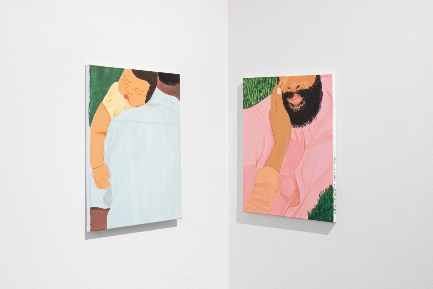 It is a series of paintings depicting moments of tenderness and love between people in the form of everyday physical actions. This project of mine started in the spring of 2020 during the first lockdown. I reasoned quite a bit about how to paint these scenes. It is now very clear to me that the urgency to paint these portraits emerged as I was trying out the anti-Covid rules on my own skin for the first time: wearing a mask, avoiding hugs with family and friends, having few social interactions and in a limited way. As the series took shape, I didn’t realize that I was depicting moments that I missed-both in the form of an observer and as a protagonist.
